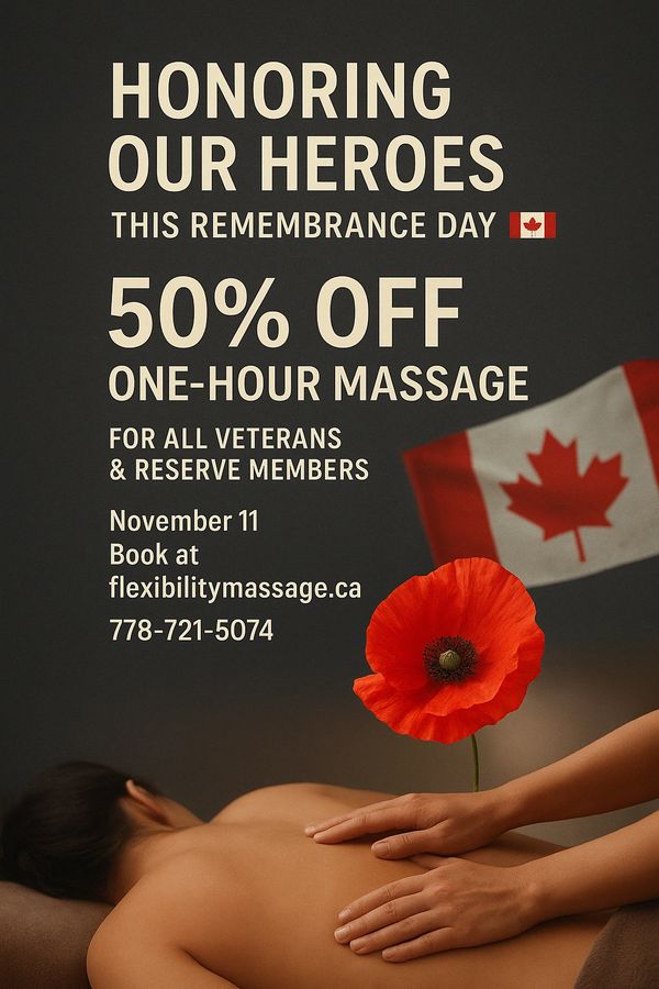 💆♂️ Get a 50% OFF one-hour massage for all veterans and reserve members.